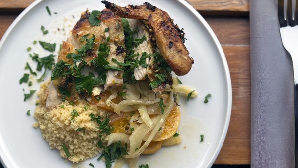 (Serves 4) For marinade: 1 Tbsp fennel seed 1 Tbsp coriander seed ¼ cup sugar 1 Tbsp kosher salt Zest of 4 clementines 1 Tbsp sage leaves, minced 2 sprigs of tarragon, minced 2 tsp Dijon mustard ¼ cup olive oil For chicken: 4lb organic chicken, spatchcocked ¼ cup olive oil 8 to 10 clementines, sliced 2 small fennel bulbs, sliced 2 shallots, sliced 1 cup orange juice |