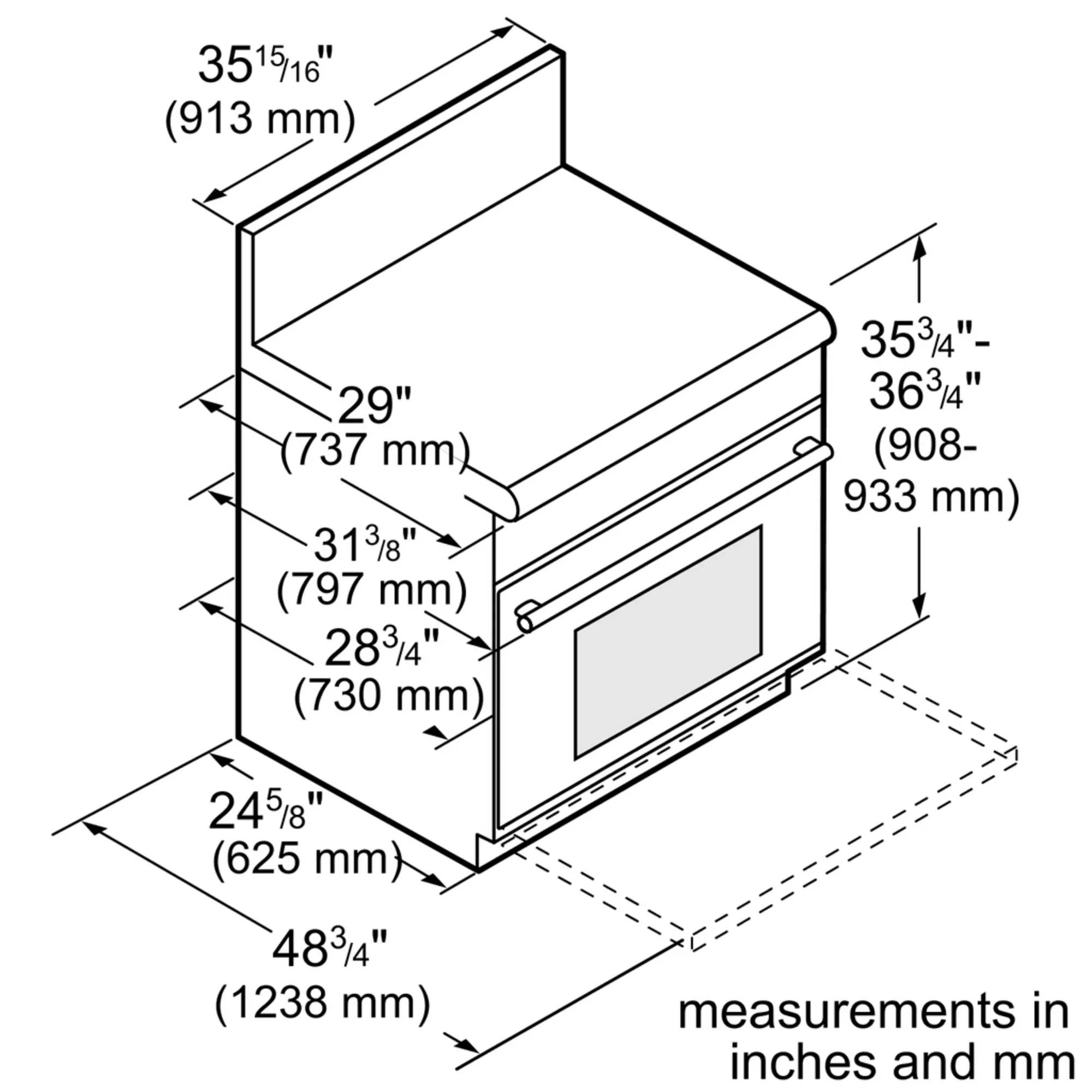35 7/8'' x 35 15/16'' x 28 7/8''
