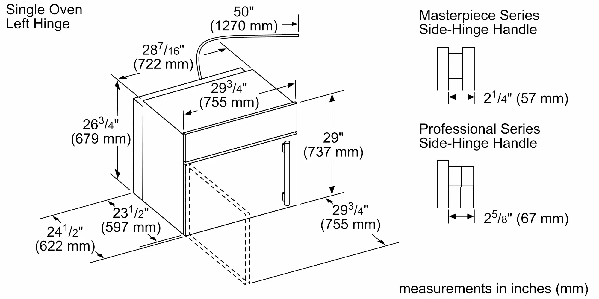 Professional Single Wall Oven 30'' Door hinge: Left, Stainless SteelPOD301LW