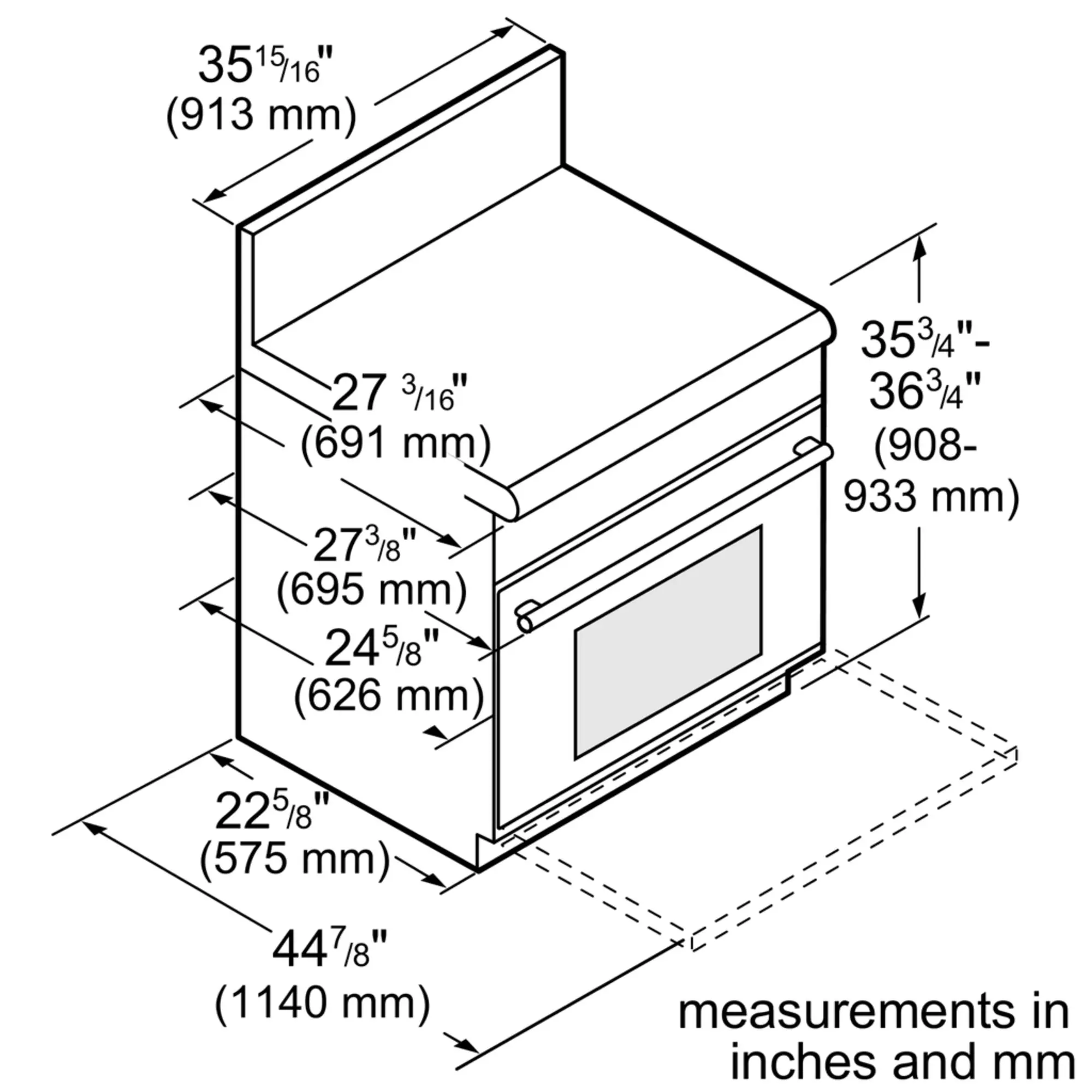 35 7/8'' x 35 15/16'' x 24 3/4''