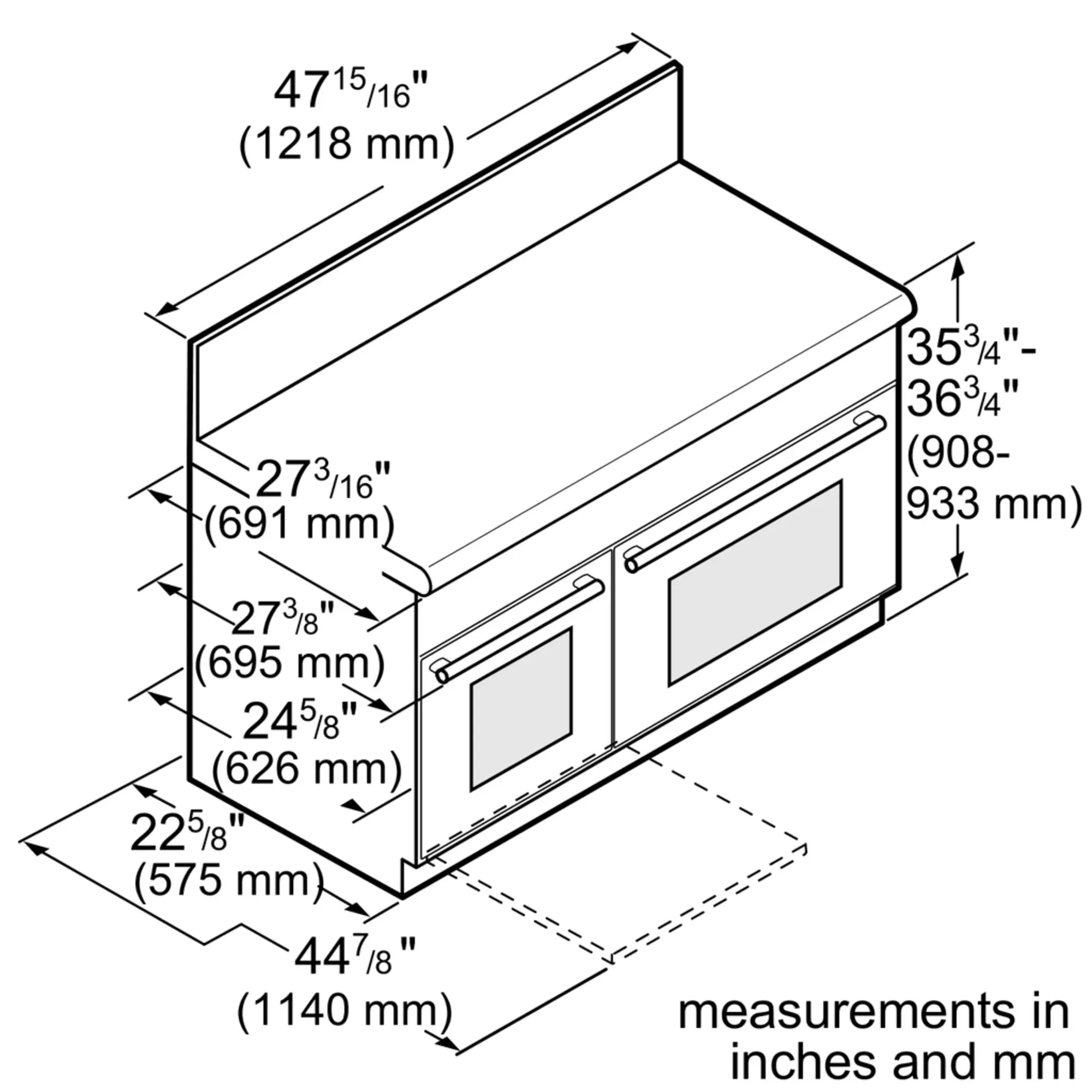 35 7/8'' x 47 15/16'' x 24 3/4''