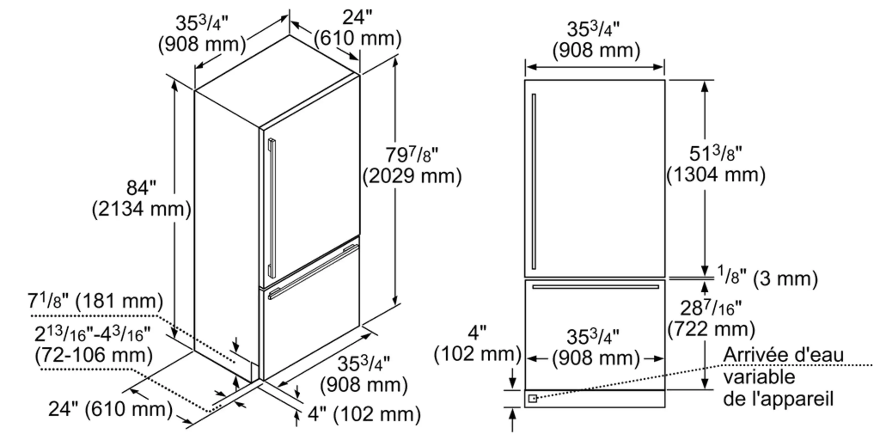83 3/4 " x 35 3/4'' x 24 3/4"