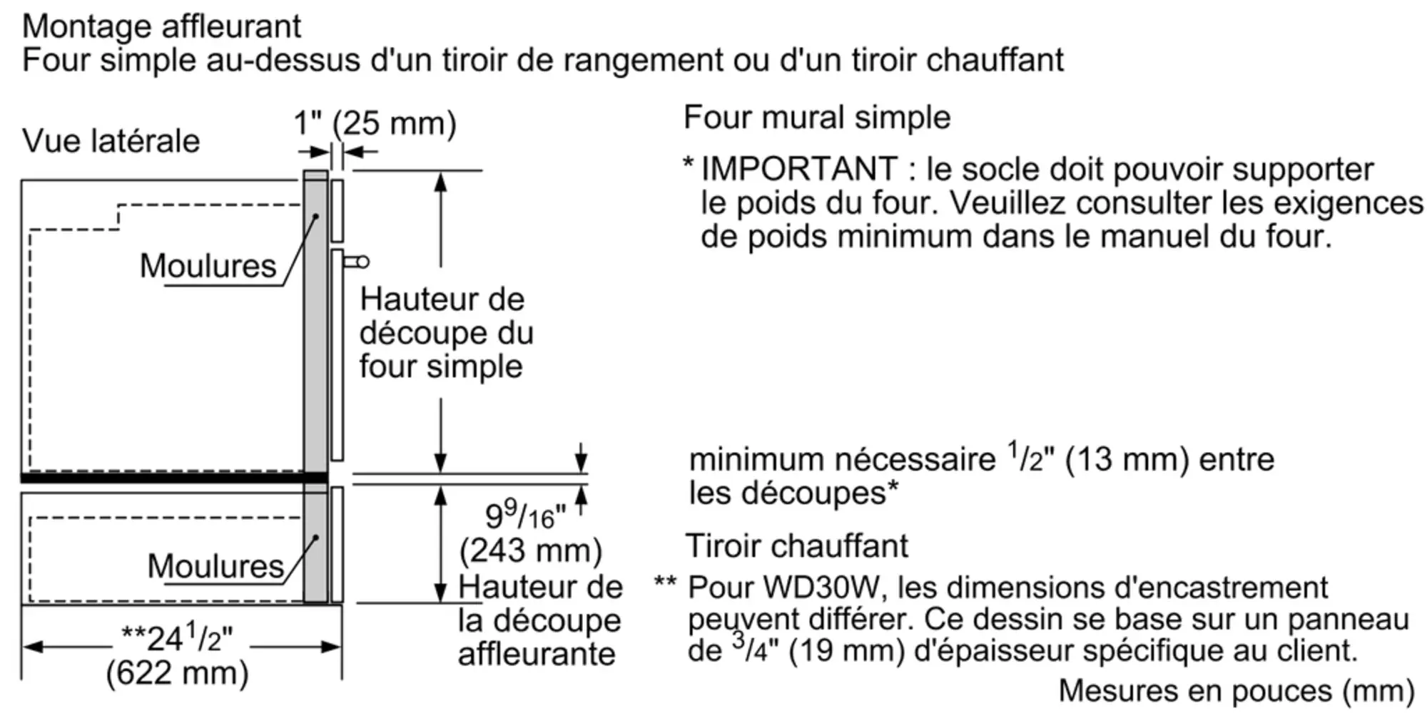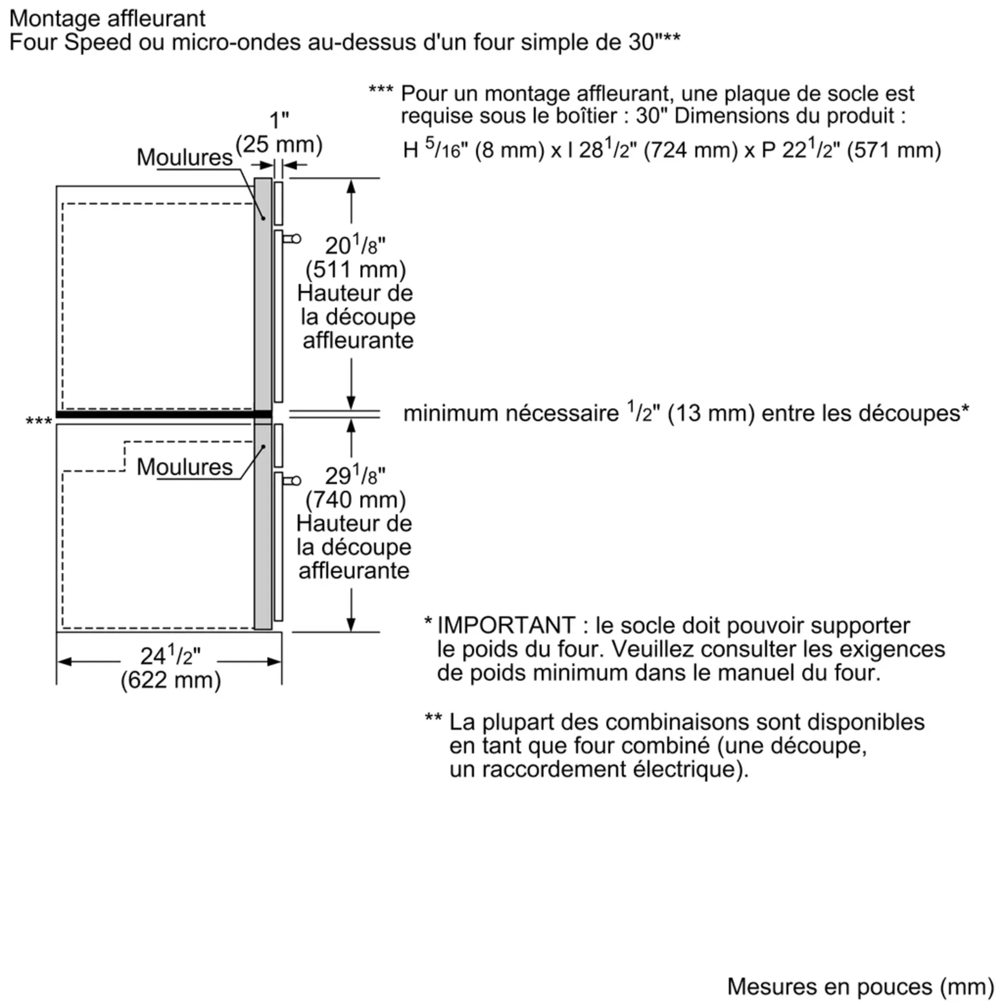 Dimensions globales de l'appareil (H x L x P) (po)