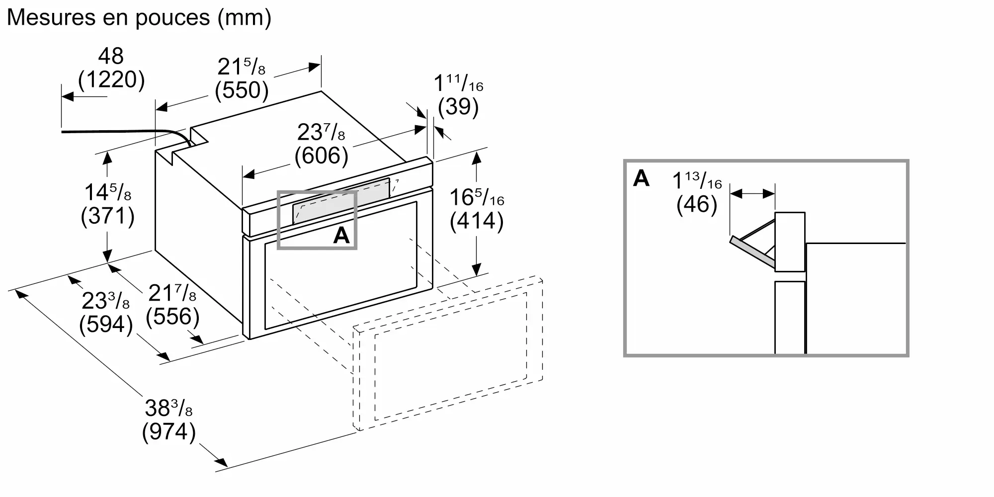 Taille de découpe requise (H x L x P) (po)