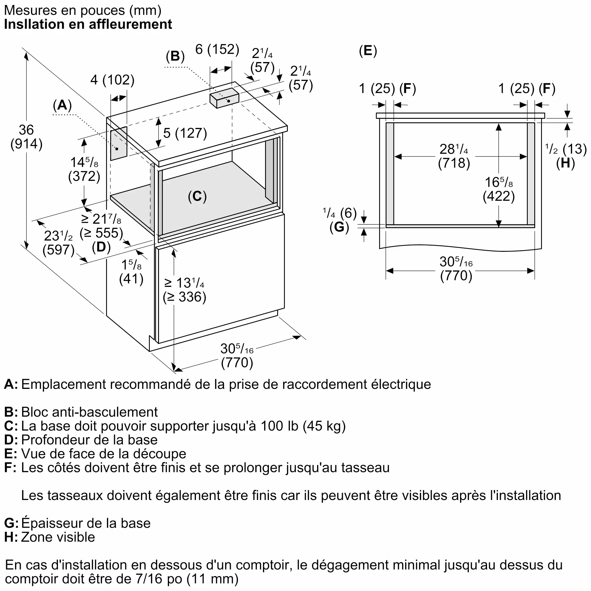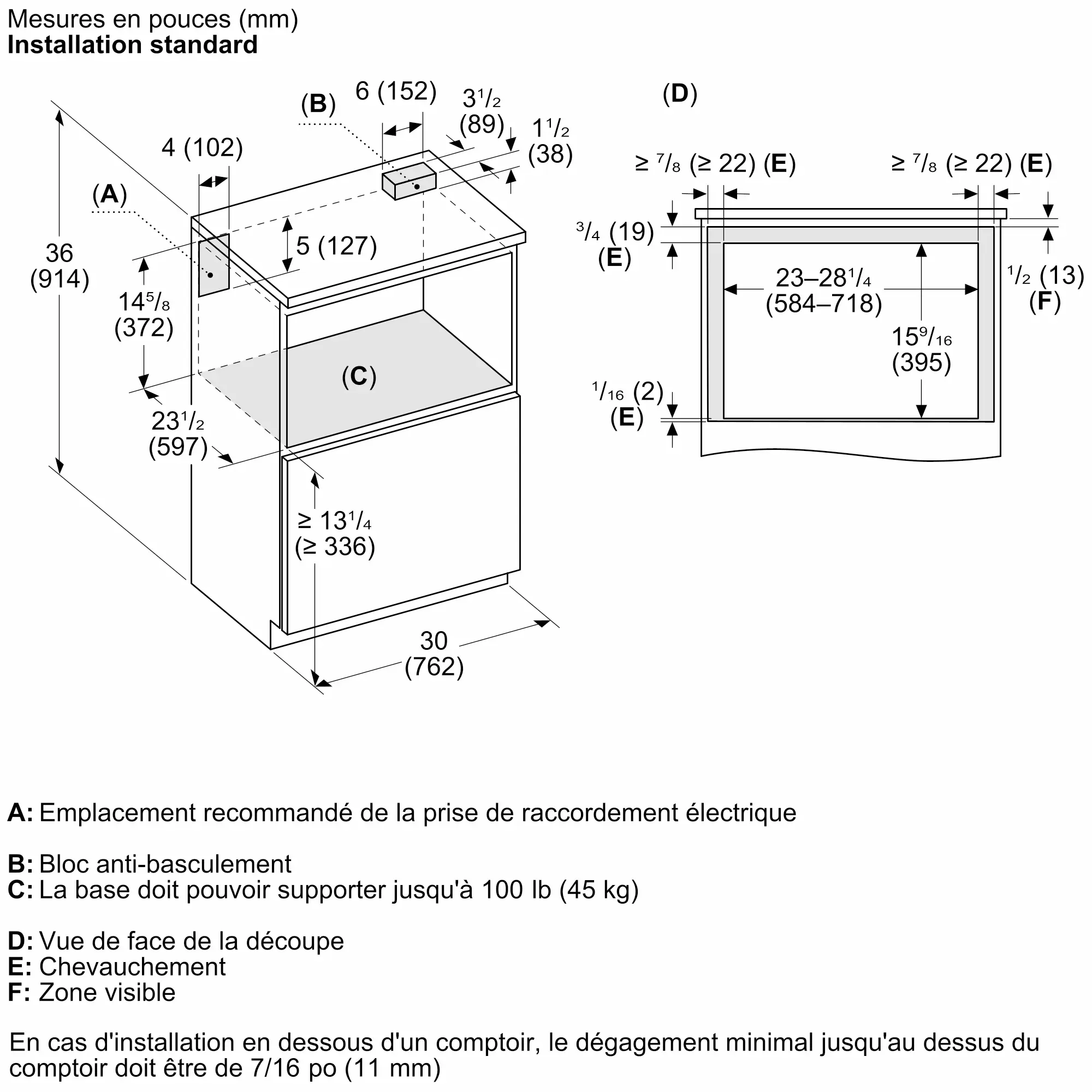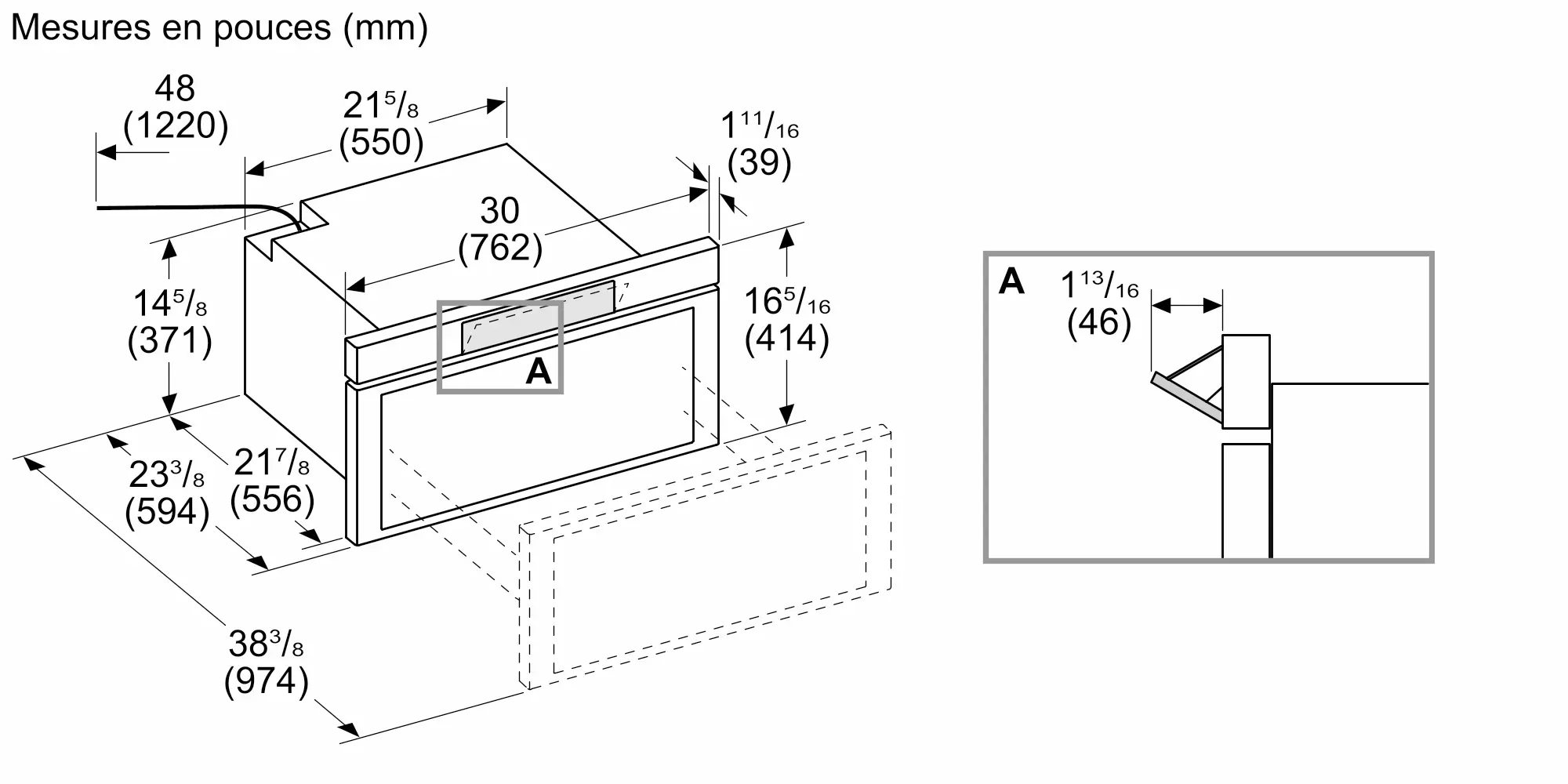 Taille de découpe requise (H x L x P) (po)