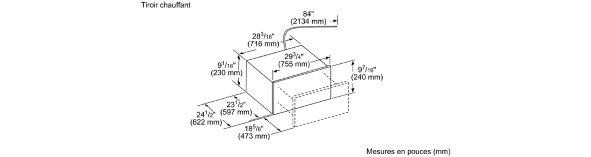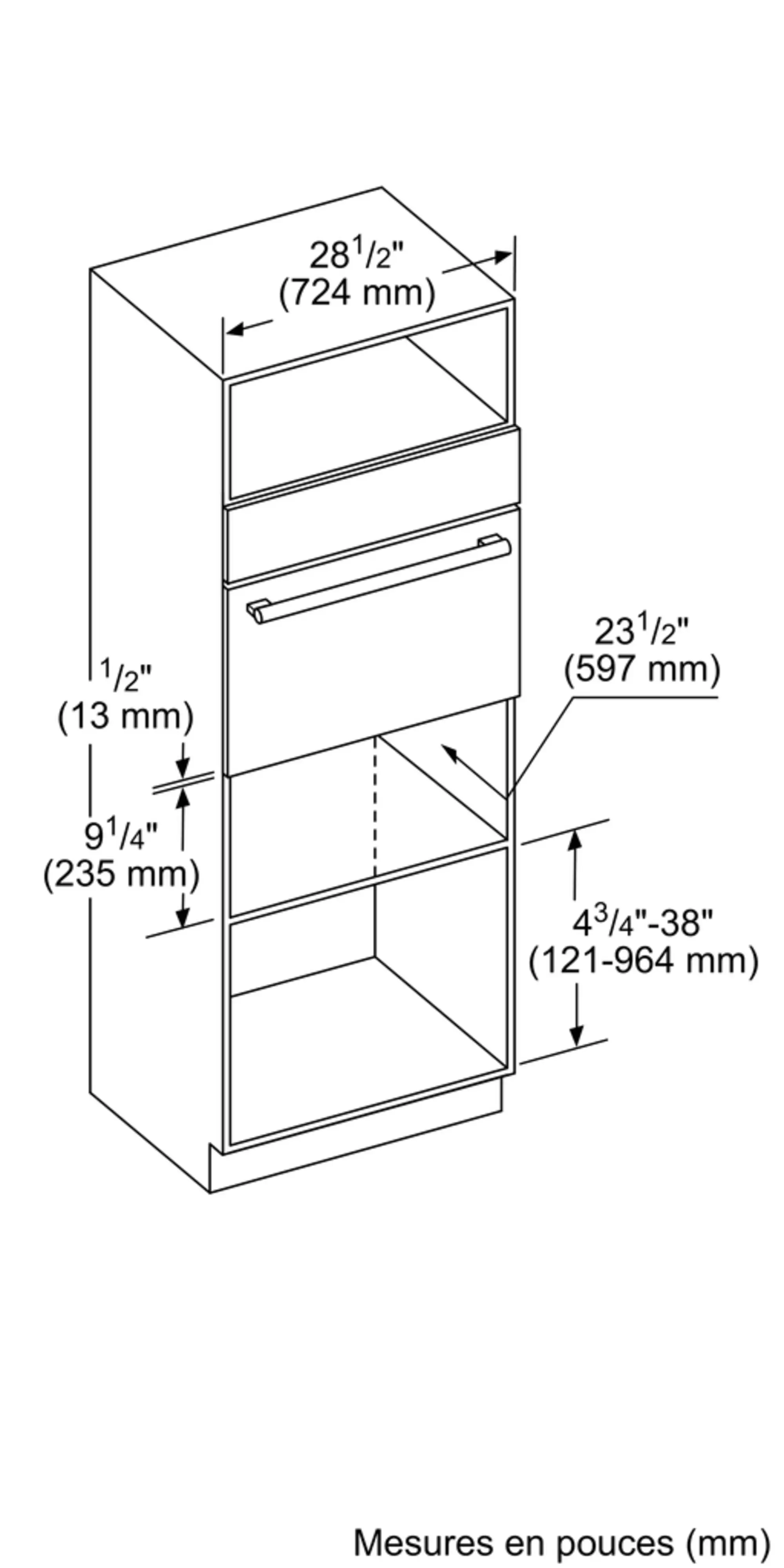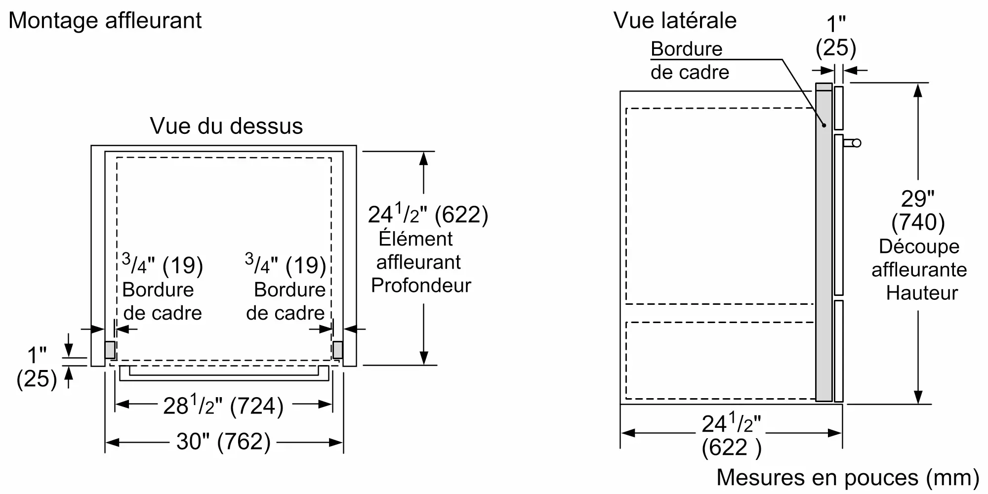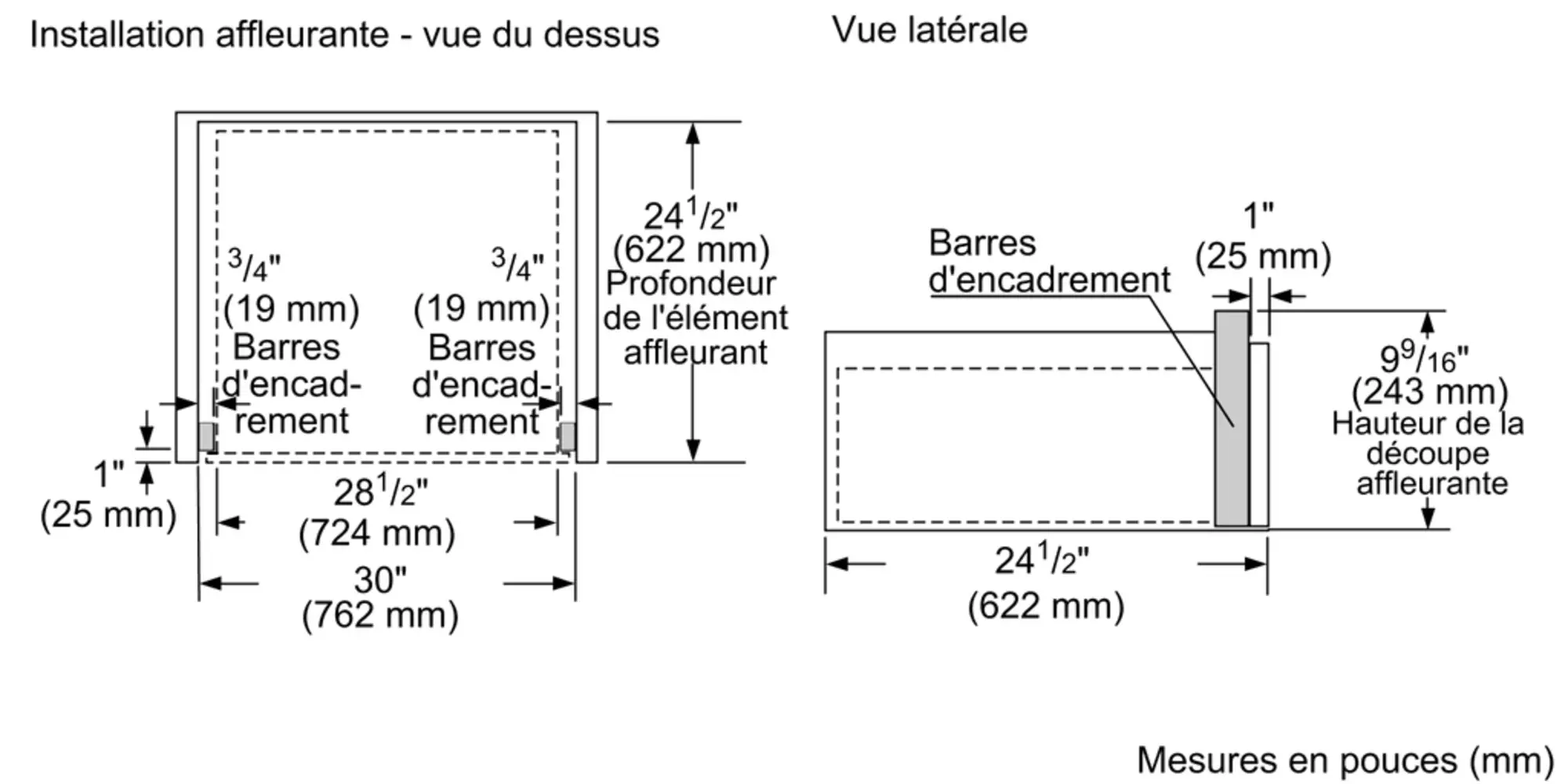 Taille de découpe requise (H x L x P) (po)