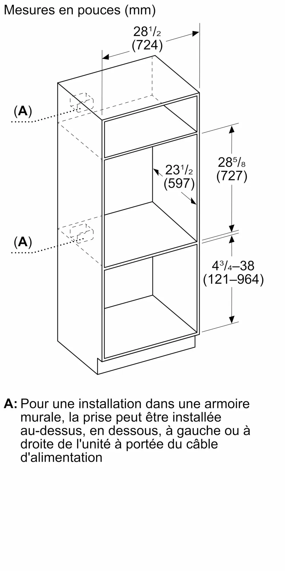 Taille de découpe requise (H x L x P)
