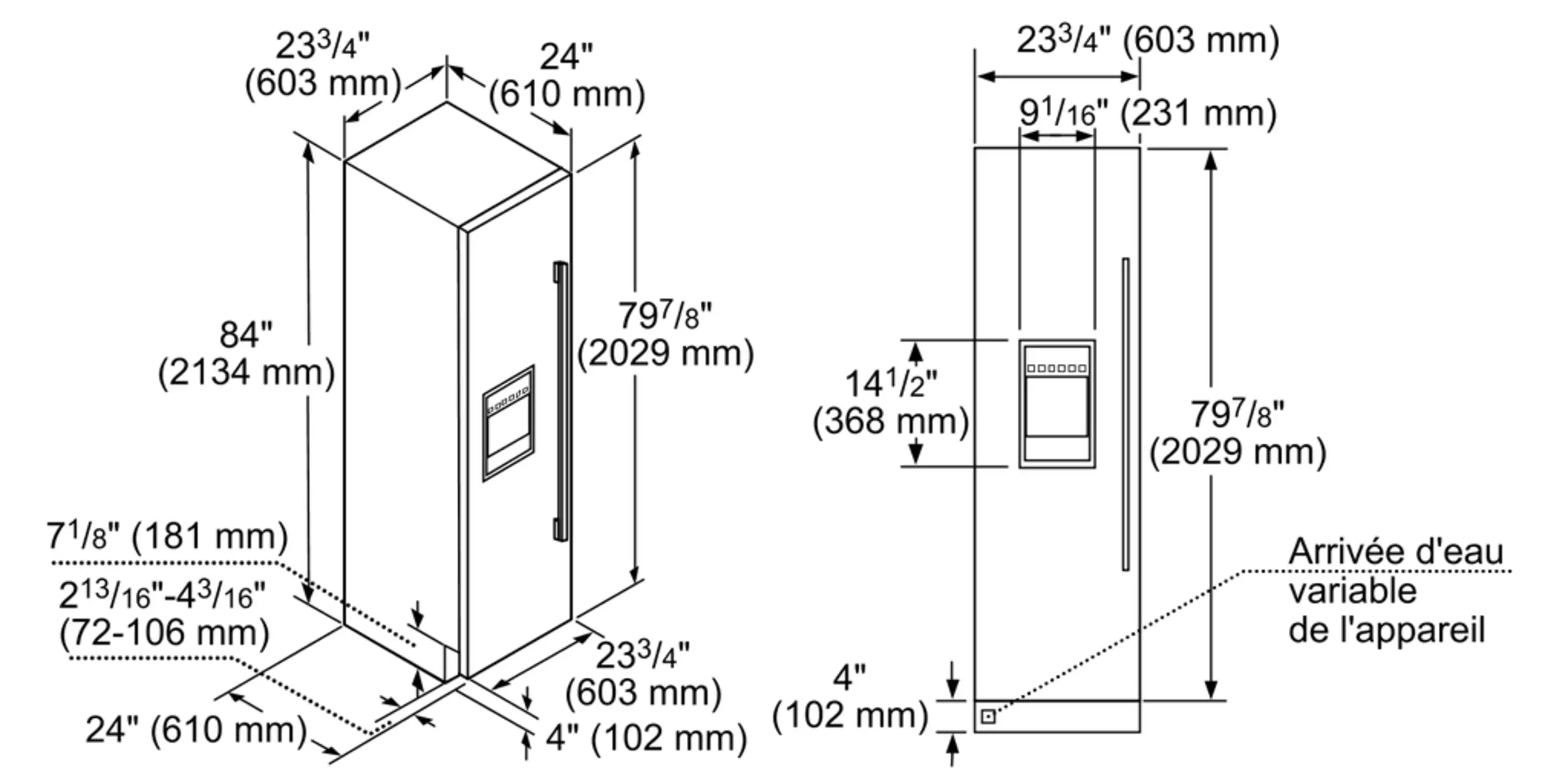 83 3/4 " x 23 3/4 " x 24"
