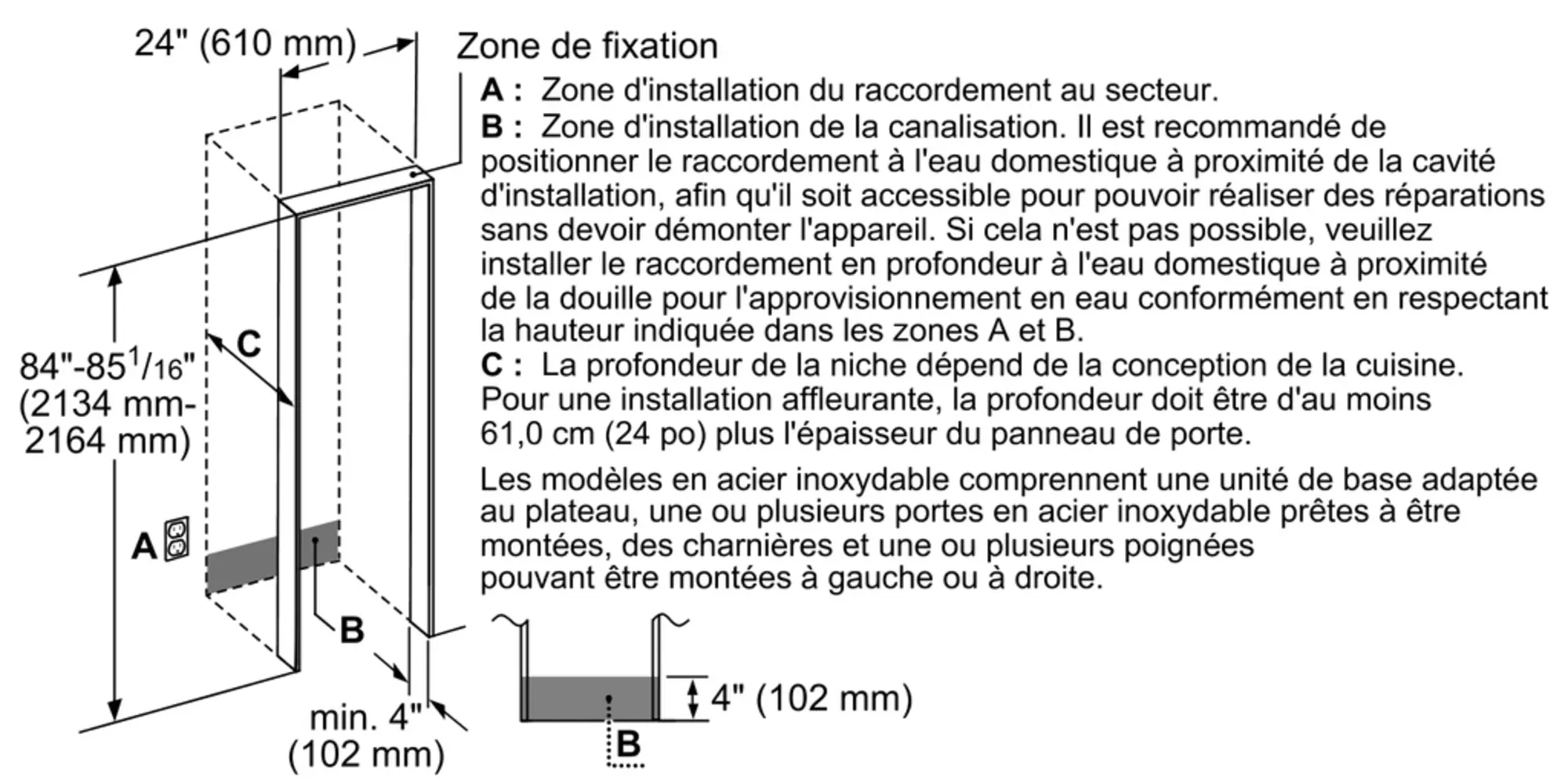 Taille de découpe requise (H x L x P) (po)