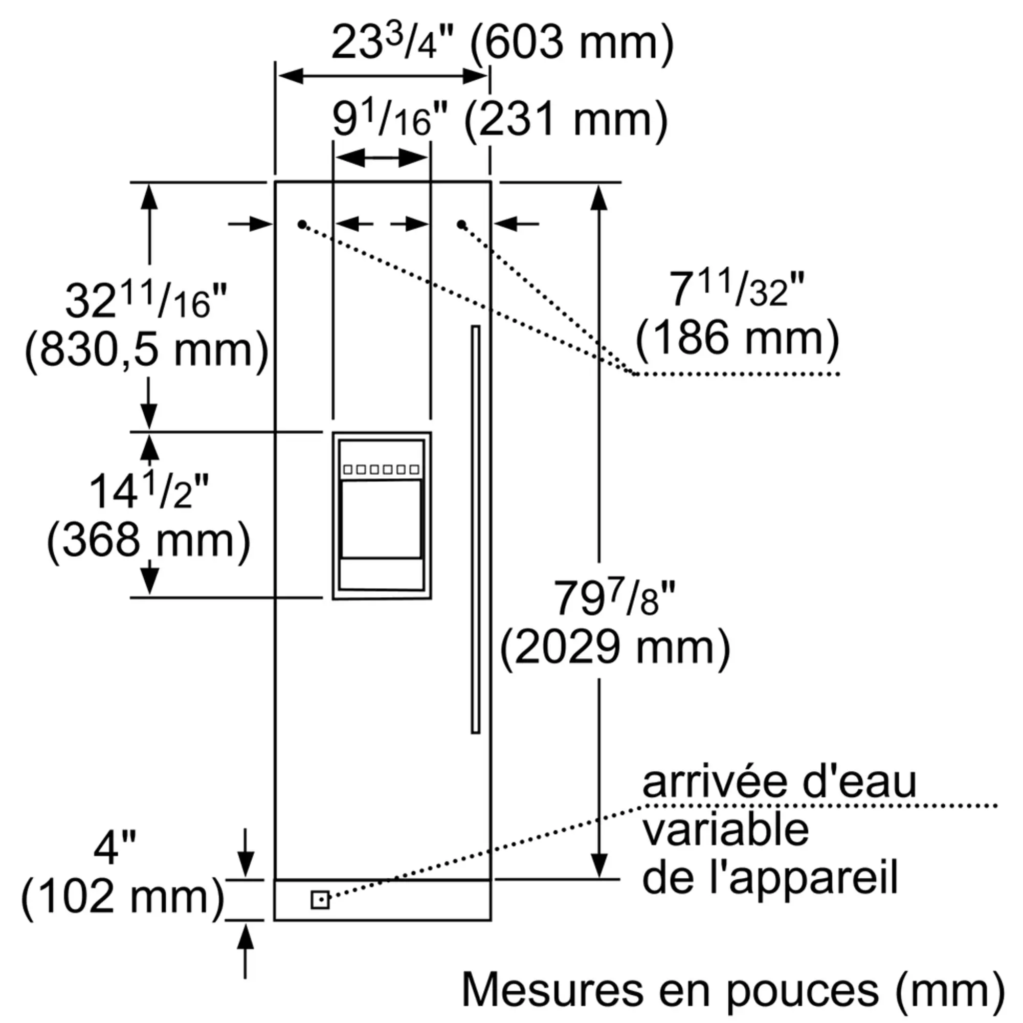 Taille de découpe requise (H x L x P)