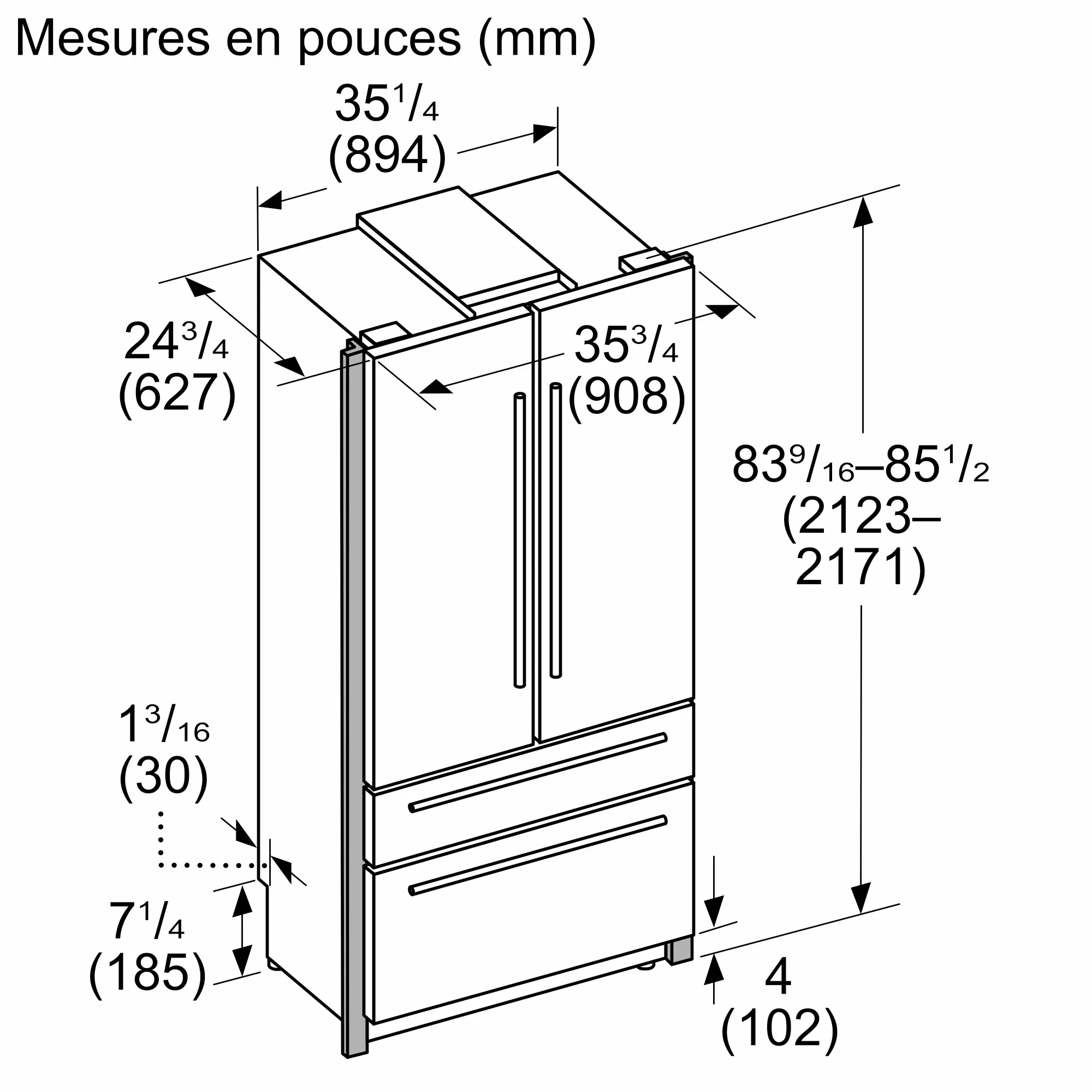 Freedom® Réfrigérateur combiné intégrable à portes françaises avec congélateur en bas 36'' Professional InoxT36BT120NS