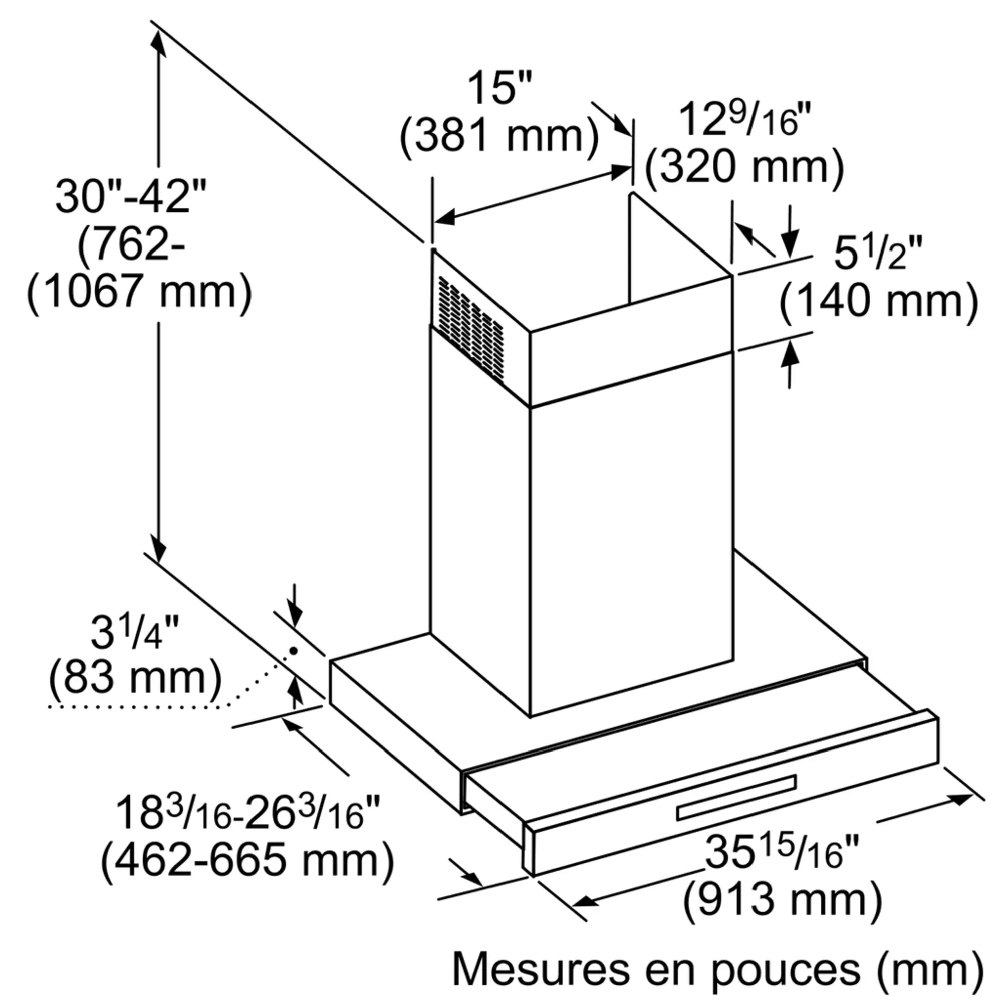 Masterpiece® wall-mounted cooker hood, box design 36'' Acier inoxHDDB36WS
